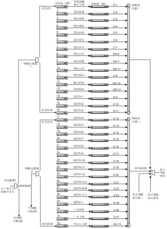 根据国家政策《广播影视科技“十五”计划和2010年远景规划》明确提出:2010年全面实现数字广播电视,2015年停止模拟广播电视的播出。对于拥有上百台电视机的企业将面临一个难题:一台电视机必须配一个机顶盒才能正常收看,一台机顶盒每年要交纳300元/年收视费。这样将要支付昂贵的收视费,增加了经营成本,而且机顶盒分散在每个房间也不易于使用和管理。 数字电视系统改造是指对国内现有数字电视机顶盒的分散模式,进行集中化管理,信号统一转换方式的统称。简言之,假设共有24个需要收视的数字电视节目,那么我们只需要用24台机顶盒用于收视这24个节目,且将节目储存集中管理,放大用户终端后,再将节目整合分配到各房间,这样就能收视完整的节目,又省去了机顶盒的费用和数字电视收视费用。 数字电视系统改造适用于酒店、宾馆、学校、医院和工厂等拥有电视机较多的场所。 数字电视系统改造原理图: